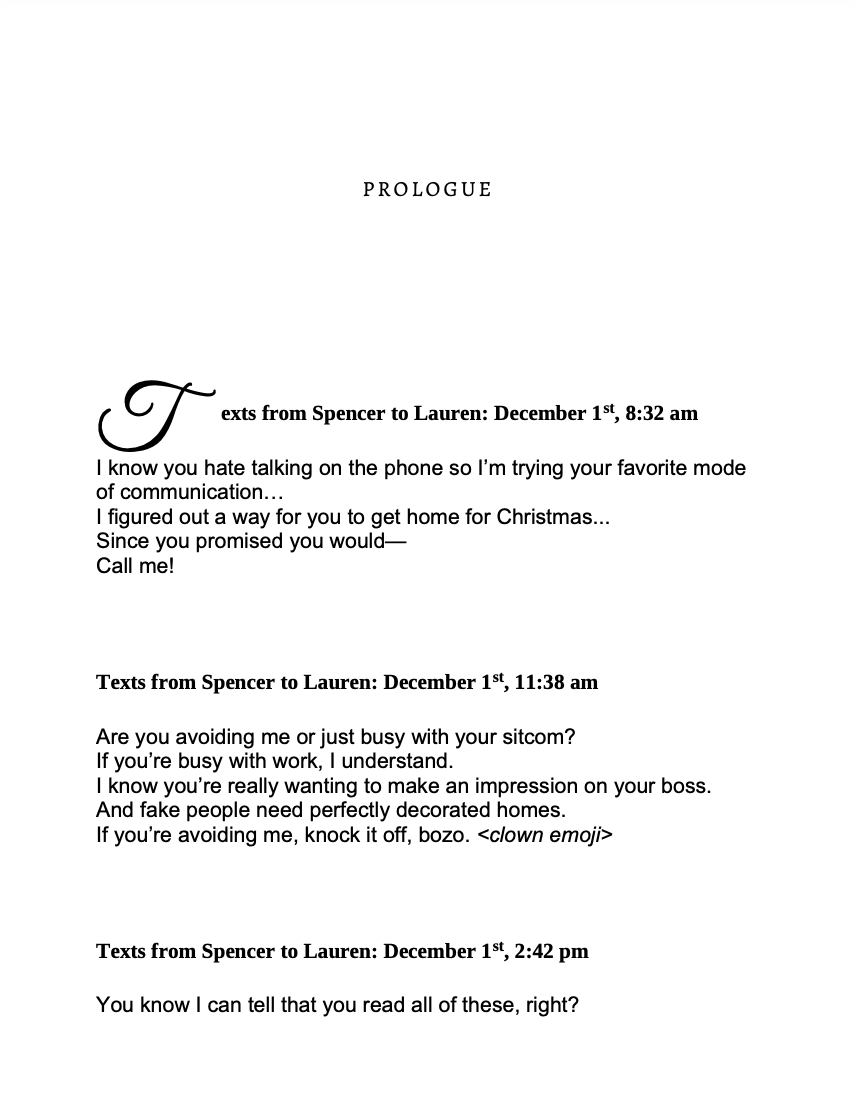 But this December, Lauren's brother and his wife are expecting a baby, so her brother arranges a ride home for her with his good friend, Will.