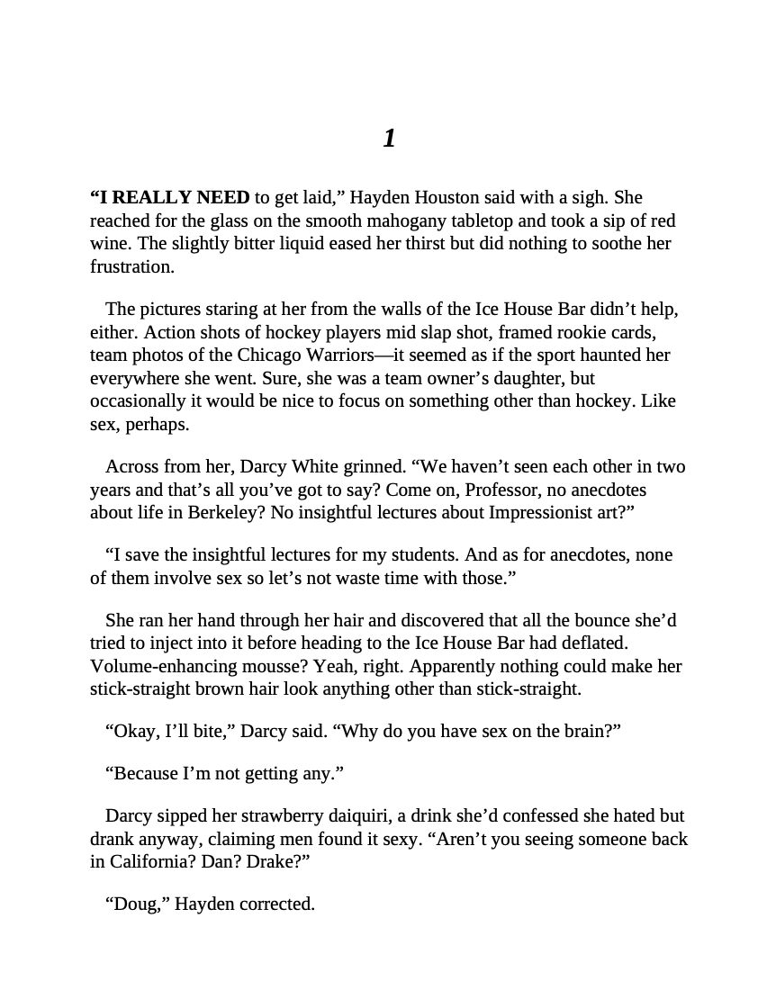 Hard body? Check. Awesome-night-in-the-sack potential? Check Hayden Houston is breaking out of her good-girl mode. It's time for a one-night stand--and she's found just the man for the job She spent her childhood being dragged from rink to rink by her hockey-coach father. Now Hayden craves stability. And she's determined to get it--after this one night....