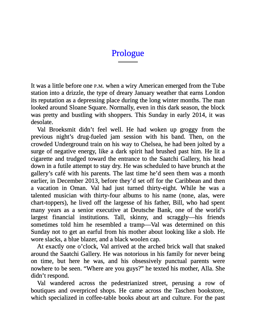 On a rainy Sunday in 2014, a senior executive at Deutsche Bank was found hanging in his London apartment. Bill Broeksmit had helped build the 150-year-old financial institution into a global colossus, and his sudden death was a mystery, made more so by the bank's efforts to deter investigation. Broeksmit, it turned out, was a man who knew too much.