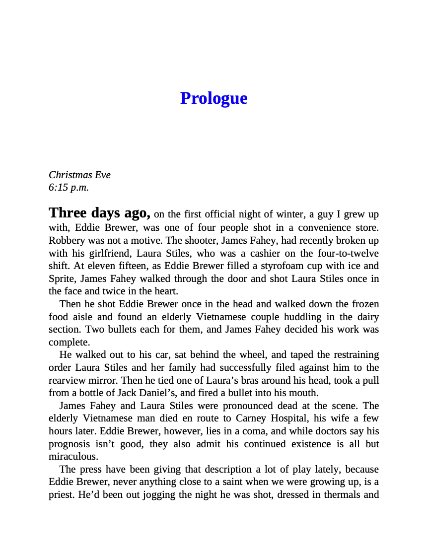 A man is murdered in Boston by crucifixion, recalling a similar murder 20 years earlier for which a killer is serving time in prison. So it can't be him, or can it? As bodies pile up PIs Angela Dimassi Gennaro and Patrick Kenzie go to work. By the author of A Drink Before the War.