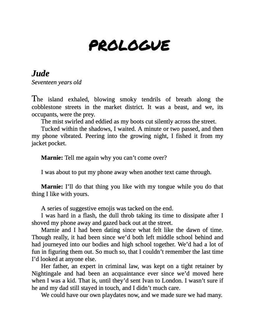And it most certainly wasn't my fault his ex-girlfriend arrived when he'd decided to kiss me back.Then the cruelty began.I'd thought I could handle it, so long as his lips kept gracing mine and he kept giving me more scorching firsts. Until he took it too far, and all his carefully kept secrets blew open the doors to a brand-new world. A world he was all too familiar with.Obsession became loathing and fear replaced naivety as Jude was forced to hold my hand and help me navigate a secret society rife with sin and debauchery-the crème de la crème of Peridot Island.If I wasn't careful, I'd do more than lose what remained of my heart. My first love and greatest foe wouldn't be satisfied until he'd devoured my soul, too.