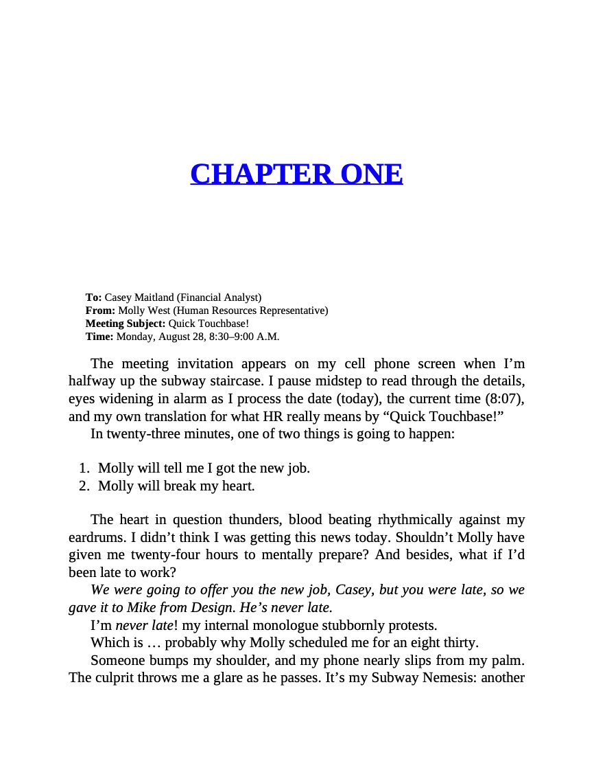 Love Interest is Clare Gilmore's sparkling debut, a co-worker enemies-to-lovers rom-com that proves falling in love is the risk and the reward. Casey Maitland has always preferred the reliability of numbers, despite growing up the daughter of two artistic souls. Now a twenty-four-year-old finance expert working in Manhattan, Casey wonders if the project manager opening at her company - magazine powerhouse LC Publications - is a sign from the universe to pursue a career with a little more sparkle. That is, until she's passed over for the job in favor of the board chairman's son. Alex Harrison is handsome, Harvard-educated, and enigmatic. Everybody loves him - except for Casey. But when the two are thrown on the same project, they both have something to prove. For Casey, it's getting tapped for a transfer to the London office and fulfilling her dreams of travelling. For Alex, it's successfully launching a brand that will impress his distant father. As work meetings turn into after hours, Casey and Alex are drawn to each other again and again, but neither can avoid the messy secrets and corporate intrigue threatening to tear them apart. What they discover about their own company might change everything - including the dreams each of them is chasing