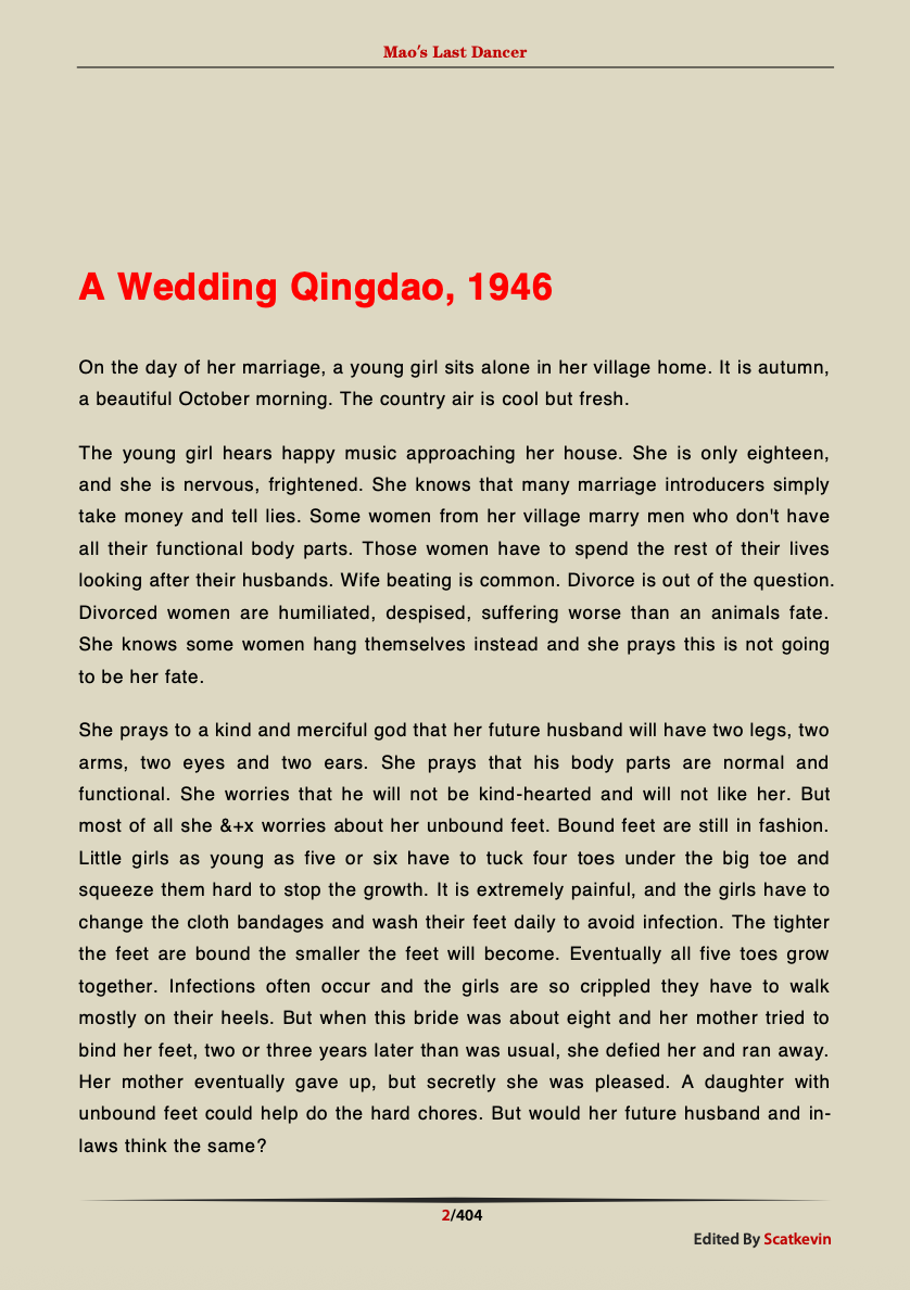 Simply told, with charm, humour and compassion and at times, great drama. His childhood, despite the terrible hardships, is drawn with love and affection and contrasts starkly with the seven lonely years of gruelling training at the Peking Dance Academy. At the age of l8, Li performs at the Houston Ballet school in the US, which leads to his dramatic defection.