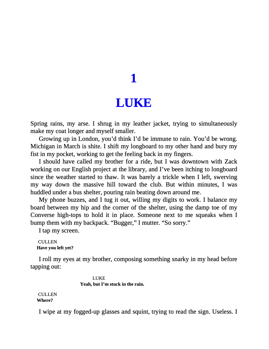 Growing up under his punk rocker dad’s spotlight, eighteen-year-old Luke Greenly knows fame and wants nothing to do with it. His real love isn’t in front of a crowd, it’s on the page. Hiding his gift and secretly hoarding songs in his bedroom at night, he prefers the anonymous comfort of the locally popular podcast he co-hosts with his outgoing and meddling, far-too-jealousy-inspiringly-happy-with-his-long-term-boyfriend twin brother, Cullen. But that’s not Luke’s only secret. He also has a major un-requited crush on music blogger, Vada Carsewell.