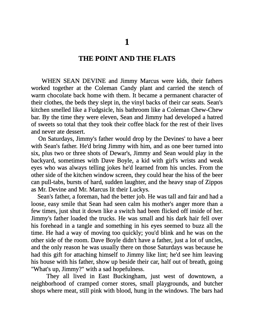 "There are threads in our lives. You pull one, and everything else gets affected." When they were children, Sean Devine, Jimmy Marcus, and Dave Boyle were friends. But then a strange car pulled tip to their street. One boy got into the car, two did not, and something terrible happened -- something that ended their friendship and changed all three boys forever. Twenty-five years later, Sean Devine is a homicide detective. Jimmy Marcus is an ex-con who owns a corner store. And Dave Boyle is trying to hold his marriage together and keep his demons at bay -- demons that urge him to do terrible things. When Jimmy Marcus's daughter is found murdered, Sean Devine is assigned to the case. His personal life unraveling, he must go back into a world he thought he'd left behind to confront not only the violence, of the present but the nightmares of his past. His investigation brings him into conflict with Jimmy Marcus, who finds that his old criminal impulses tempt him to solve the crime with brutal justice. And then there is Dave Boyle, who came home the night Jimmy's daughter died covered with someone else's blood. While Sean Devine attempts to use the law to return peace and order to the neighborhood, Jimmy Marcus finds his need for vengeance pushing him ever closer to a moral abyss from which lie wont be able to return, and Dave's wife, Celeste, sleeps at night with a man she fears may very well be a monster. a monster who fathered her child and hides his true nature from everyone, possibly even himself. A tense and unnerving psychological thriller, Mystic River is also an epic novel of love and loyalty, faith and family, in which people irrevocably marked by the past find themselves on a collision course with the darkest truths of their own hidden selves.