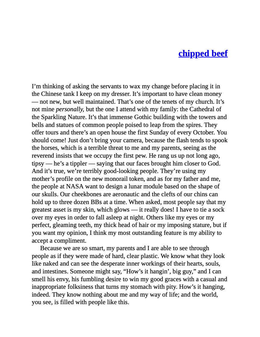 A riotous collection of memoirs which explores the absurd hilarity of modern life and creates a wickedly incisive portrait of an all-too-familiar world. It takes Sedaris from his humiliating bout with obsessive behaviour in 'A Plague of Tics' to the title story, where he is finally forced to face his naked self in the company of lunatics. At this soulful and moving moment, he brushes cigarette ashes from his pubic hair and wonders what it all means.