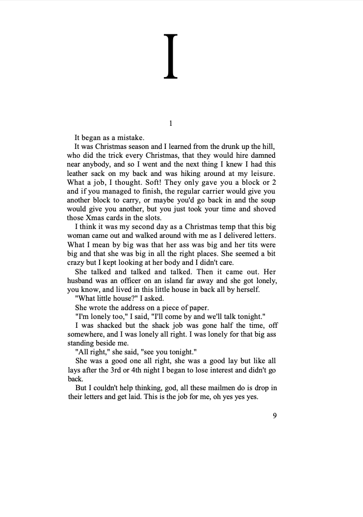 Henry Chinaski is a lowlife loser with a hand-to-mouth existence. His menial post office day job supports a life of beer, one-night stands and racetracks. Lurid, uncompromising and hilarious, Post Office is a landmark in American literature.