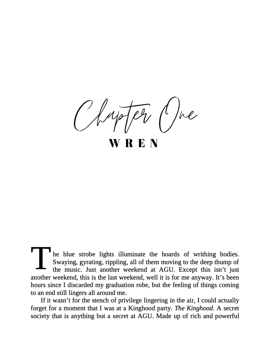 When Wren Marshall finds an invite to an exclusive Kinghood graduation party taped to his door, he is both confused and intrigued.