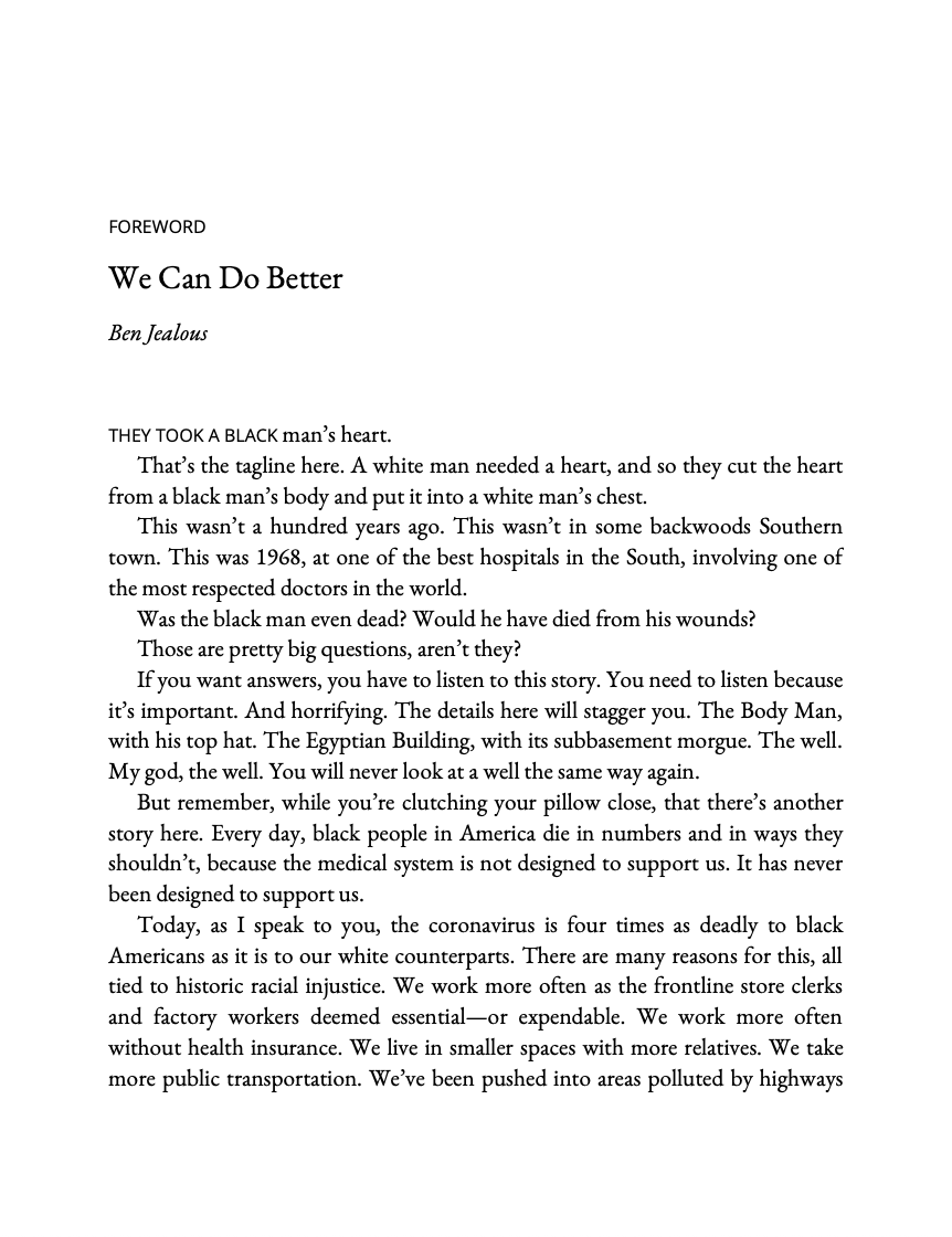 The Immortal Life of Henrietta Lacks meets Get Out in this landmark investigation of racial inequality at the core of the heart transplant race.