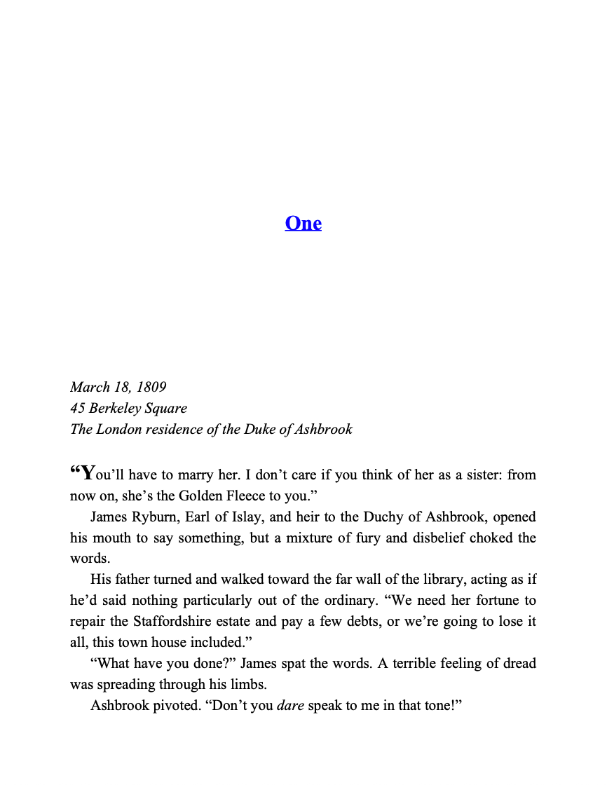 Theodora Saxby is the last woman anyone expects the gorgeous James Ryburn, heir to the Duchy of Ashbrook, to marry. But after a romantic proposal before the prince himself, even practical Theo finds herself convinced of her soon-to-be duke's passion.