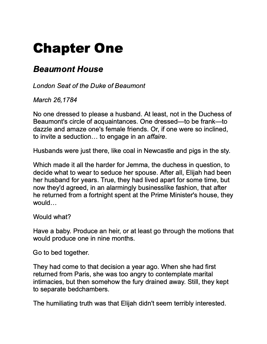But the handsome duke needs an heir, so he summons his seductive wife home. Jemma laughs at Elijah's cool eyes and icy heart—but to her secret shock, she doesn't share his feelings. In fact, she wants the impossible: her husband's heart at her feet.