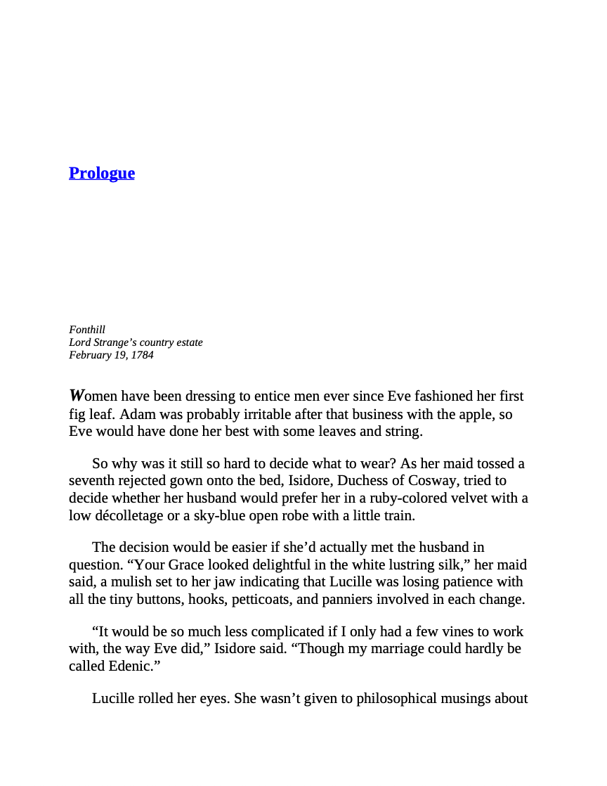 Forsaking his adventuresome past, Simeon has returned to London ready to embrace the life of a proper duke, only to find that his supposed wife is too ravishing, too headstrong, and too sensual to be the docile duchess he has in mind. But Isidore will not give up her claim to the title—or him—without a fight.