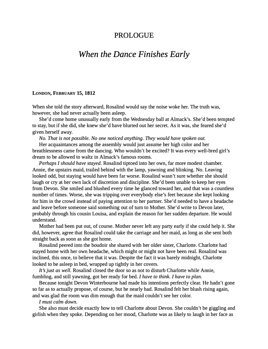 So, when artistocratic wastrel Jasper Aimesworth is found dead in London’s most exclusive ballroom, Almack’s, Rosalind must use her skills and connections to uncover the killer from a list of suspects that includes Almack’s powerful patronesses and her former suitor Devon Winterbourne, now Lord Casselmaine.