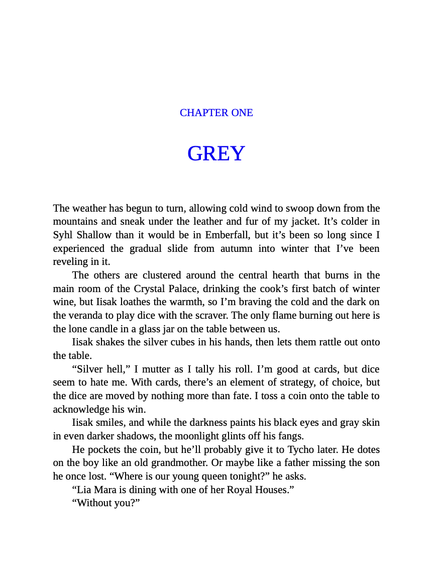 Emberfall is crumbling fast, torn between those who believe Rhen is the rightful prince and those who are eager to begin a new era under Grey, the true heir. Grey has agreed to wait two months before attacking Emberfall, and in that time, Rhen has turned away from everyone--even Harper, as she desperately tries to help him find a path to peace.