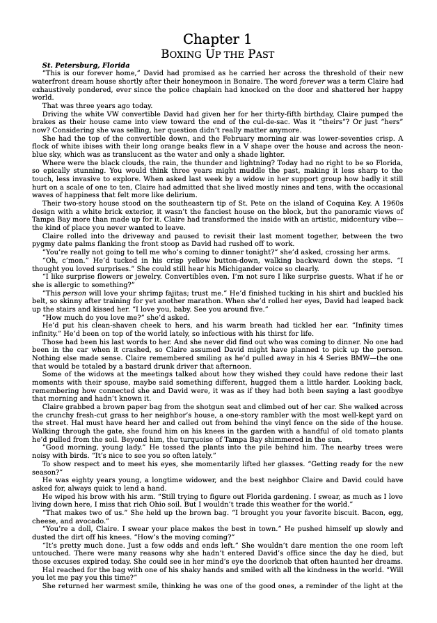 There's more to the novel than anyone dreamed. Something personal. Something true. Maybe, in bringing a chapter of David's life to a close, Claire and Whitaker can find hope for a new beginning.