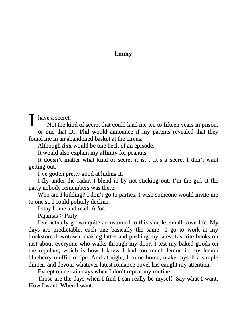 Owen Larrabee is not my soulmate. He wasn't when I confessed my love to him on his wedding day, and he isn't now. I should probably say that I wasn't the bride when that happened. I don't have the best timing. He's got a temper, he's moody, and he has a history of being misunderstood and making big mistakes. I, on the other hand, make pumpkin cupcakes, spend my Friday nights curled up with a beloved romance novel and long to be kissed in the rain. Owen is my best friend's older, off-limits brother and the only boy I ever thought I loved. Which is laughable because he only ever saw me as his kid sister's dorky friend. But that was a long time ago. And I'm over him. Mostly. Until he comes back to Harvest Hollow like some kind of hero, showing up just in time to pull me out of my burning house and make me feel all the things I told myself I'd never feel again. But I have questions. Why is Owen back? And does he remember our secret friendship or the day I've spent the last eight years trying to forget? I know better than to get hung up on Owen again. Especially now, when he's sworn off relationships and thinks romance is a farce. And I'm something of an expert--at least to the people who listen to my podcast, The Hopeful Romantic. Never mind that nobody would guess their local bookshop owner is the one doling out popular weekly relationship advice. Never mind that I'm basing all that advice on the hundreds, (thousands?) of romance novels I've read over the years and not on personal experience. And especially never mind that Owen is making me question everything I believe about all of it.