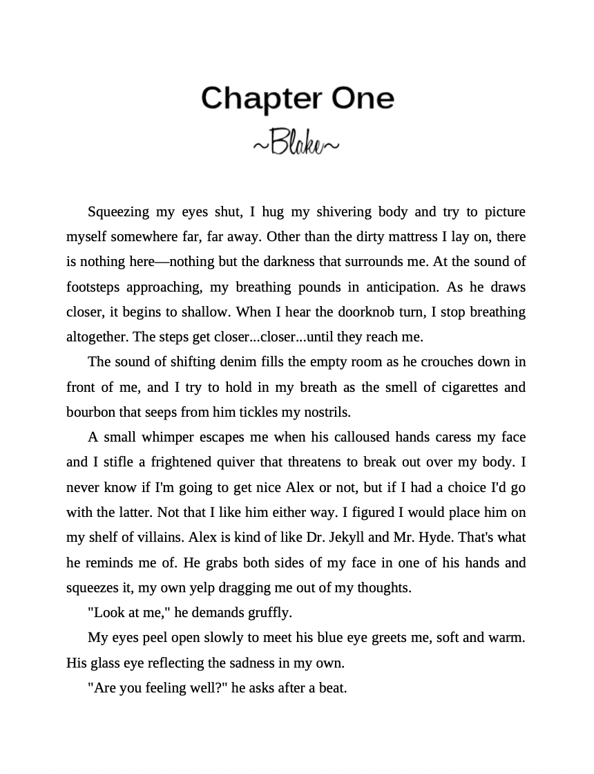 Is love ever enough?Faced with obstacles she could have never imagined, Blake is brought to darkness and back by forces in her past she never knew existed.Desperate to stay connected to the only thing he loves, Cole is forced to revisit his past and align himself with the people who knew about Blake's disappearance.Separation has forced both Blake and Cole to learn how to live under the worst circumstances, each of them alone in their own hell.When they reunite, can they be the same two people they were before darkness swept upon them?Told in separate points of view, Darkness Before Dawn is the continuation of Blake and Cole's fight to make it to the light.