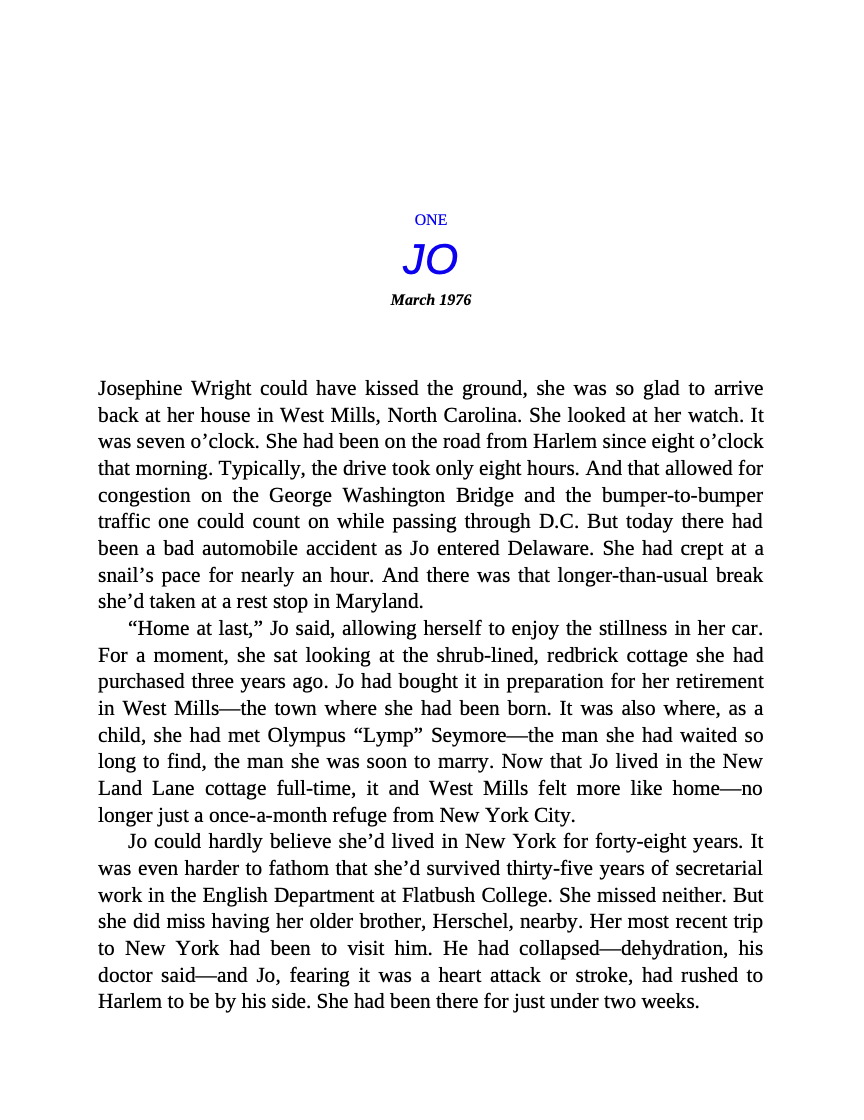 Fortunately, one person is determined to do more than talk. Miss Josephine Wright has just moved back to West Mills from New York City to retire and marry a childhood sweetheart, Olympus “Lymp” Seymore. When she discovers that the murder victims are Lymp's half-siblings, and that Lymp is one of West Mills's leading suspects, she sets out to prove his innocence. But as Jo investigates those who might know the most about the Harmons' deaths, she starts to discover more secrets than she'd ever imagined, and a host of cover-ups-ranging from medical misuse to illicit affairs-that could upend the reputations of many.
