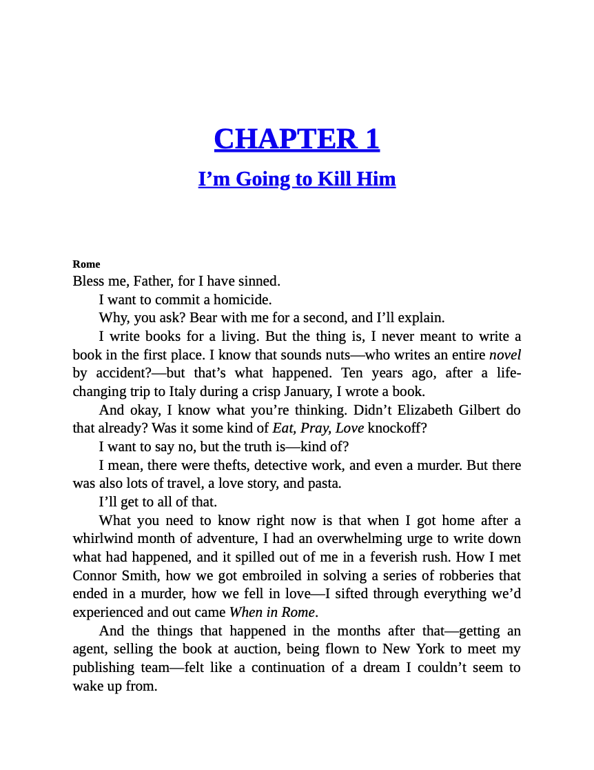 All that bestselling author Eleanor Dash wants is to get through her book tour in Italy and kill off her main character, Connor Smith, in the next in her Vacation Mysteries series—is that too much to ask?