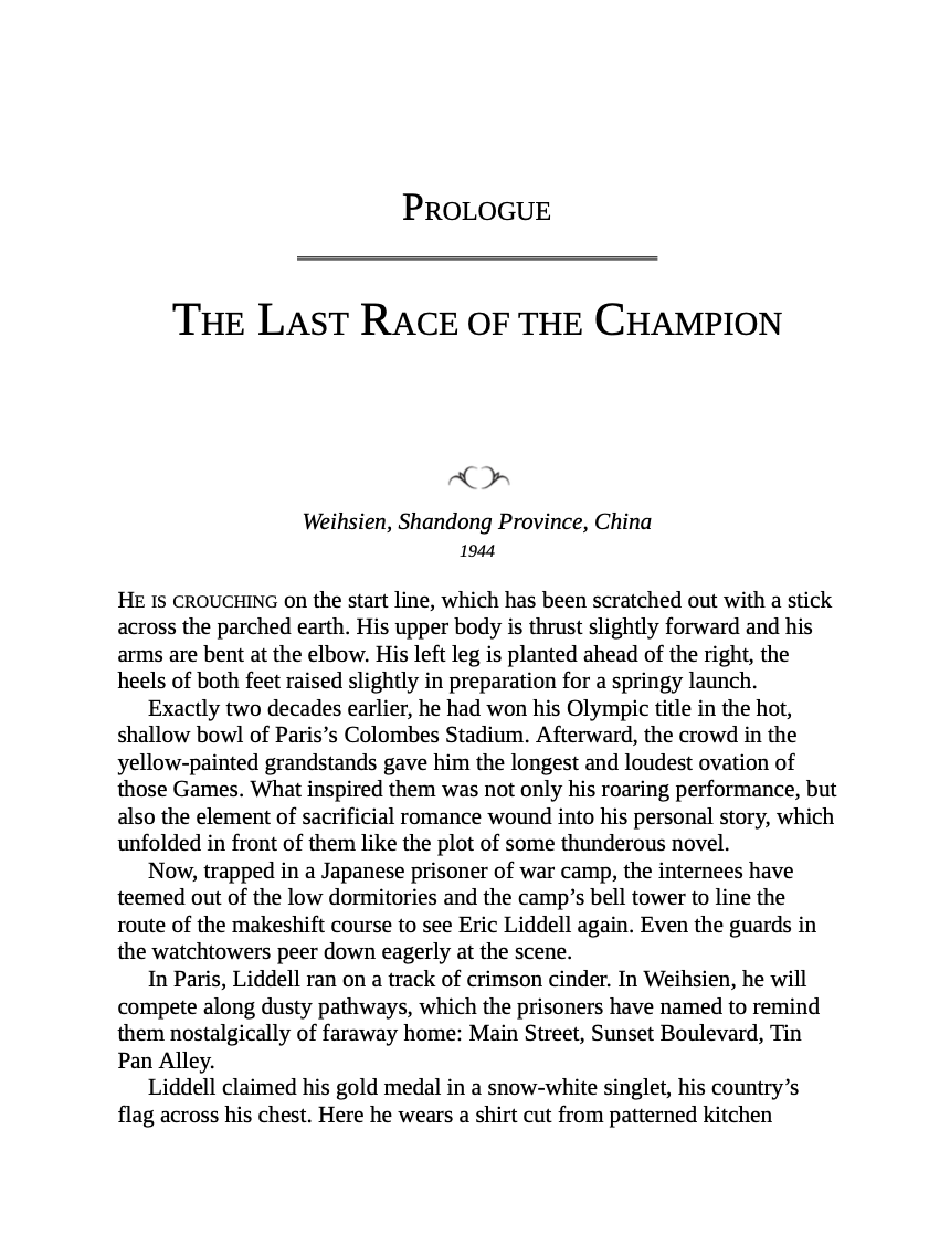 The untold and inspiring story of Eric Liddell, hero of Chariots of Fire, from his Olympic medal to his missionary work in China to his last, brave years in a Japanese work camp during WWII