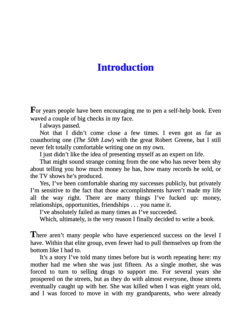 For the first time, Curtis "50 Cent" Jackson opens up about his amazing comeback--from tragic personal loss to thriving businessman and cable's highest-paid executive--in this unique self-help guide, his first since his blockbuster New York Times bestseller The 50th Law.