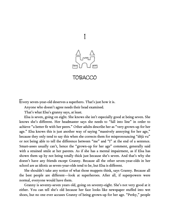 Some might call Elsa's granny 'eccentric', or even 'crazy'. Elsa calls her a superhero. And granny's stories, of knights and princesses and dragons and castles, are her superpower. Because, as Elsa is starting to learn, heroes and villains don't always exist in imaginary kingdoms; they could live just down the hallway.