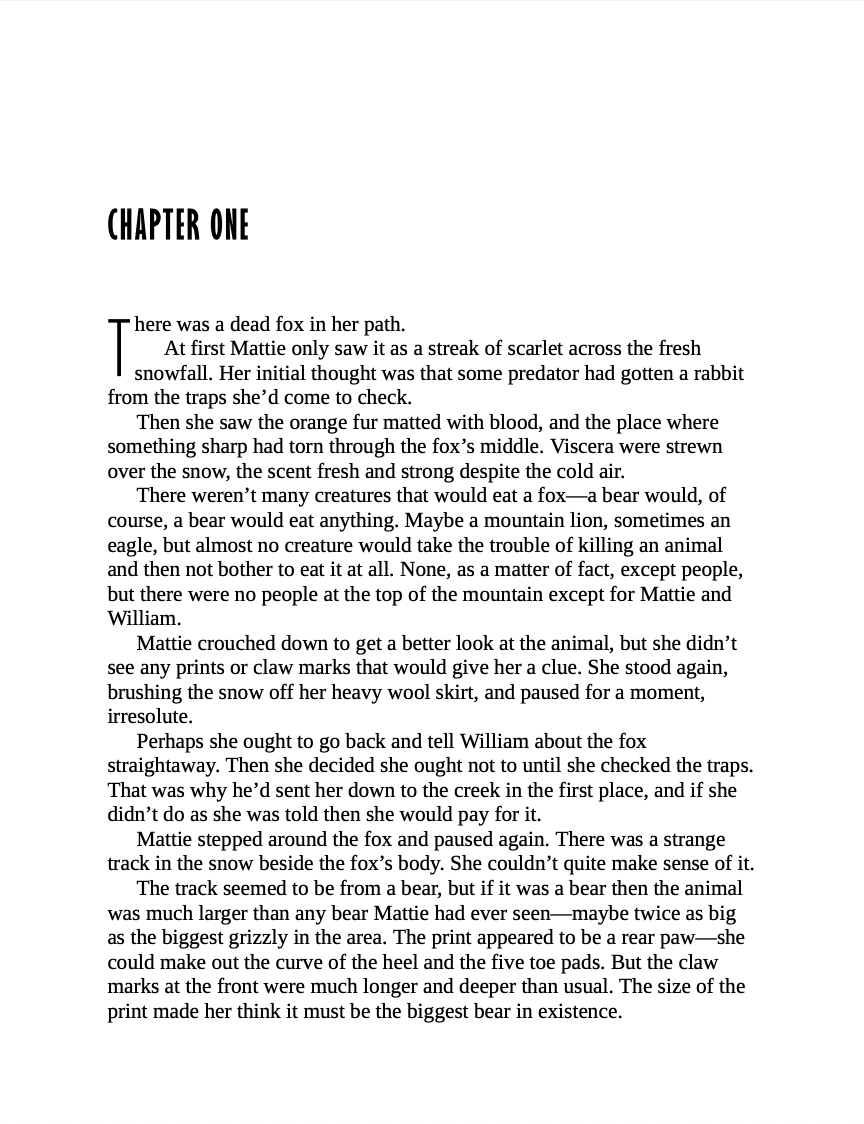 Mattie can't remember a time before she and William lived alone on a mountain together. She must never make him upset. But when Mattie discovers the mutilated body of a fox in the woods, she realizes that they’re not alone after all.