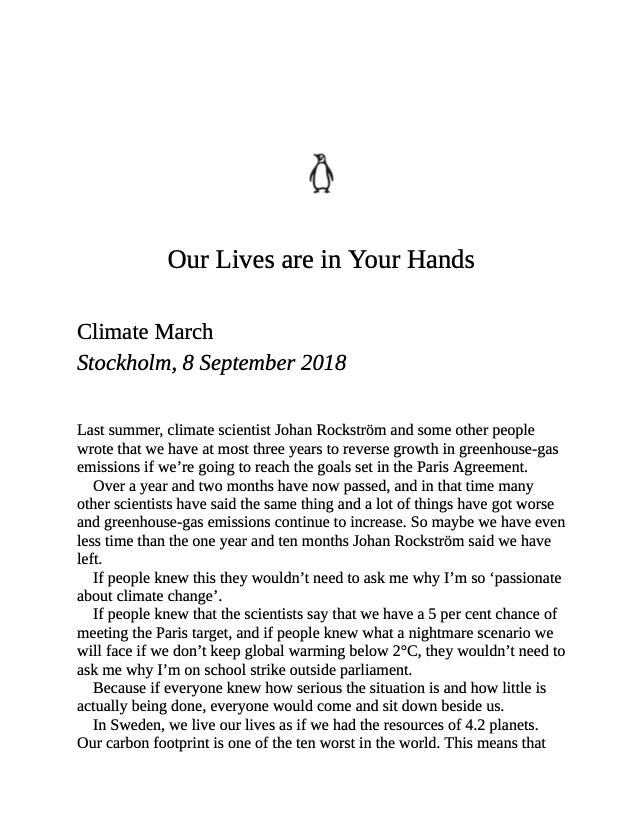 The history-making, ground-breaking speeches of Greta Thunberg, the young climate crisis activist who has become the voice of a generation.