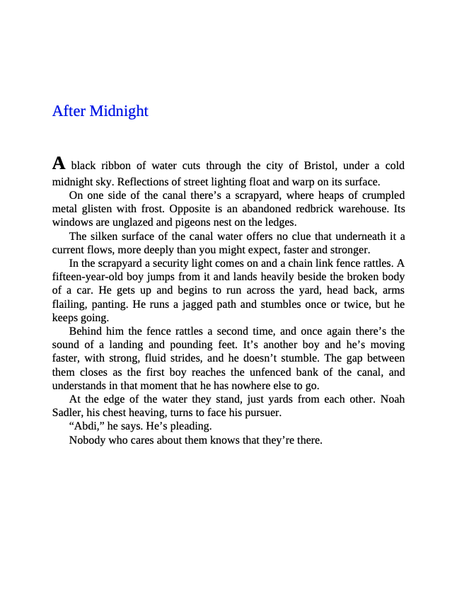 Best friends Noah Sadler and Abdi Mahad have always been inseparable. But when Noah is found floating unconscious in Bristol's Feeder Canal, Abdi can't--or won't--tell anyone what happened.