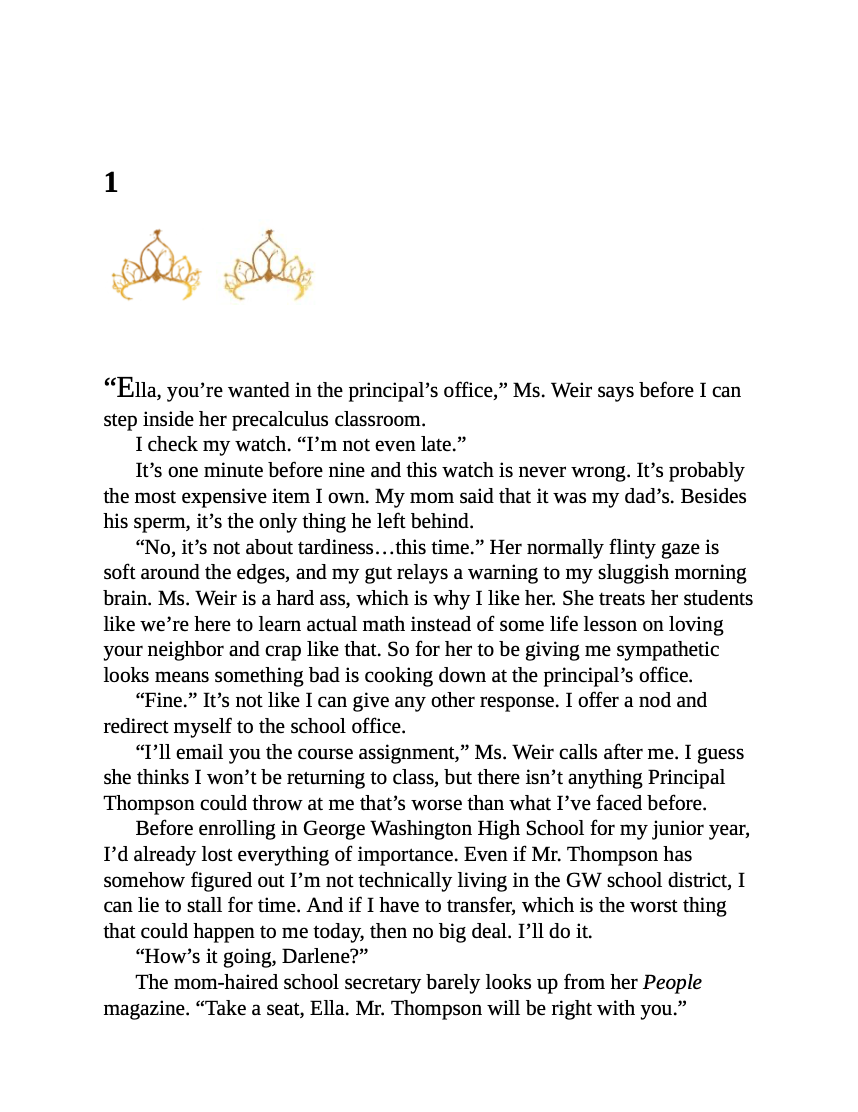Until Callum Royal appears, plucking Ella out of poverty and tossing her into his posh mansion among his five sons who all hate her. Each Royal boy is more magnetic than the last, but none as captivating as Reed Royal, the boy who is determined to send her back to the slums she came from.