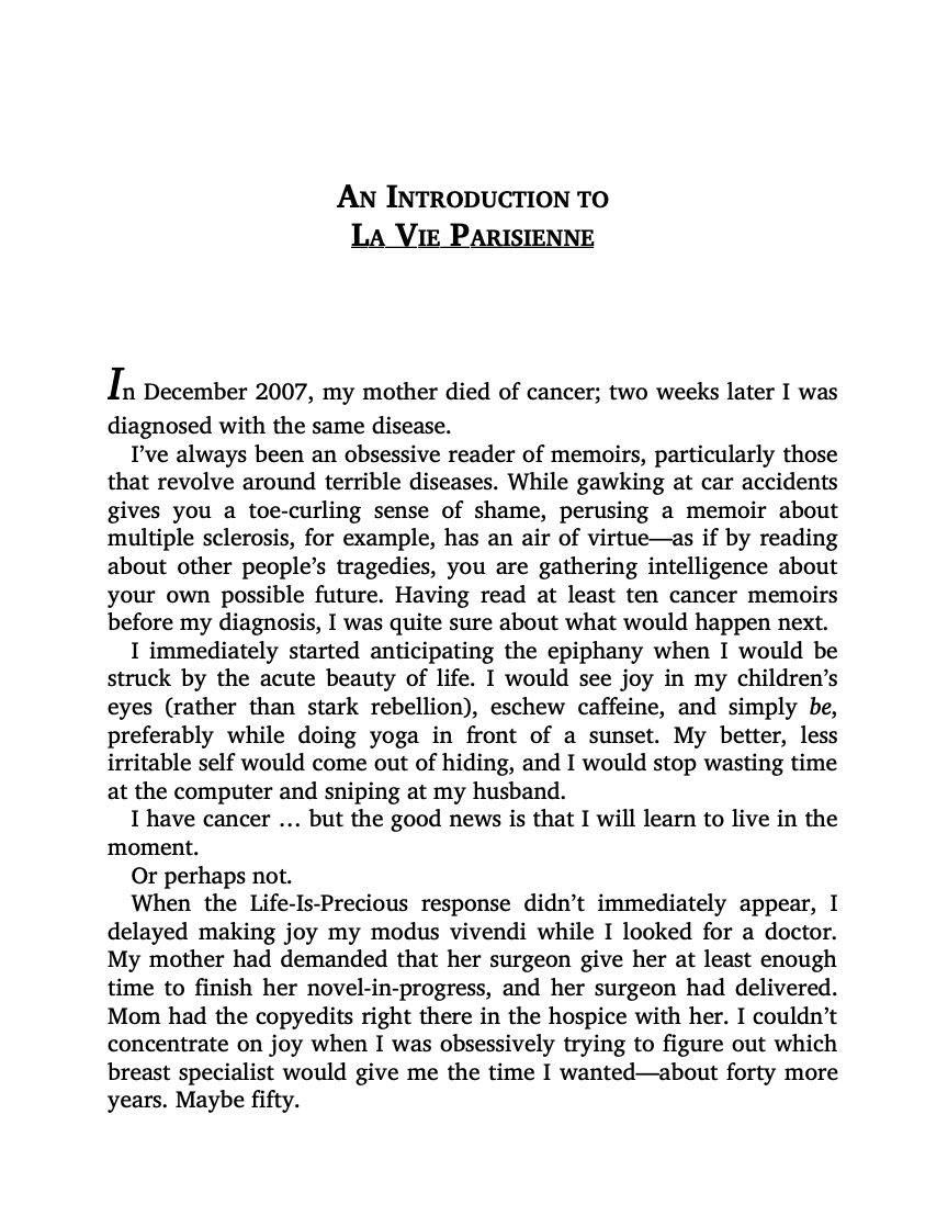 With no classes to teach, no committee meetings to attend, no lawn to mow or cars to park, Eloisa revels in the ordinary pleasures of life—discovering corner museums that tourists overlook, chronicling Frenchwomen’s sartorial triumphs, walking from one end of Paris to another. She copes with her Italian husband’s notions of quality time; her two hilarious children, ages eleven and fifteen, as they navigate schools—not to mention puberty—in a foreign language; and her mother-in-law Marina’s raised eyebrow in the kitchen (even as Marina overfeeds Milo, the family dog).