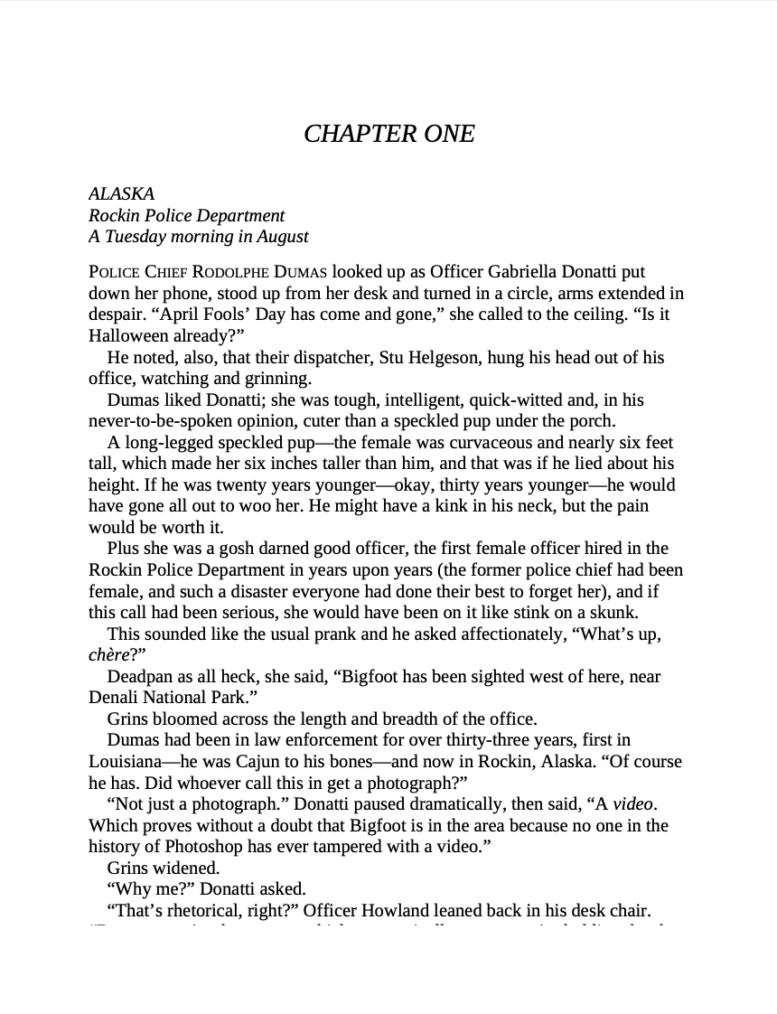 It’s just another Tuesday in Rockin, Alaska: one bear cub, two Bigfoot sightings, three corrupt law officers and a sting operation that will test new police officer Gabriella Donatti to the limits.