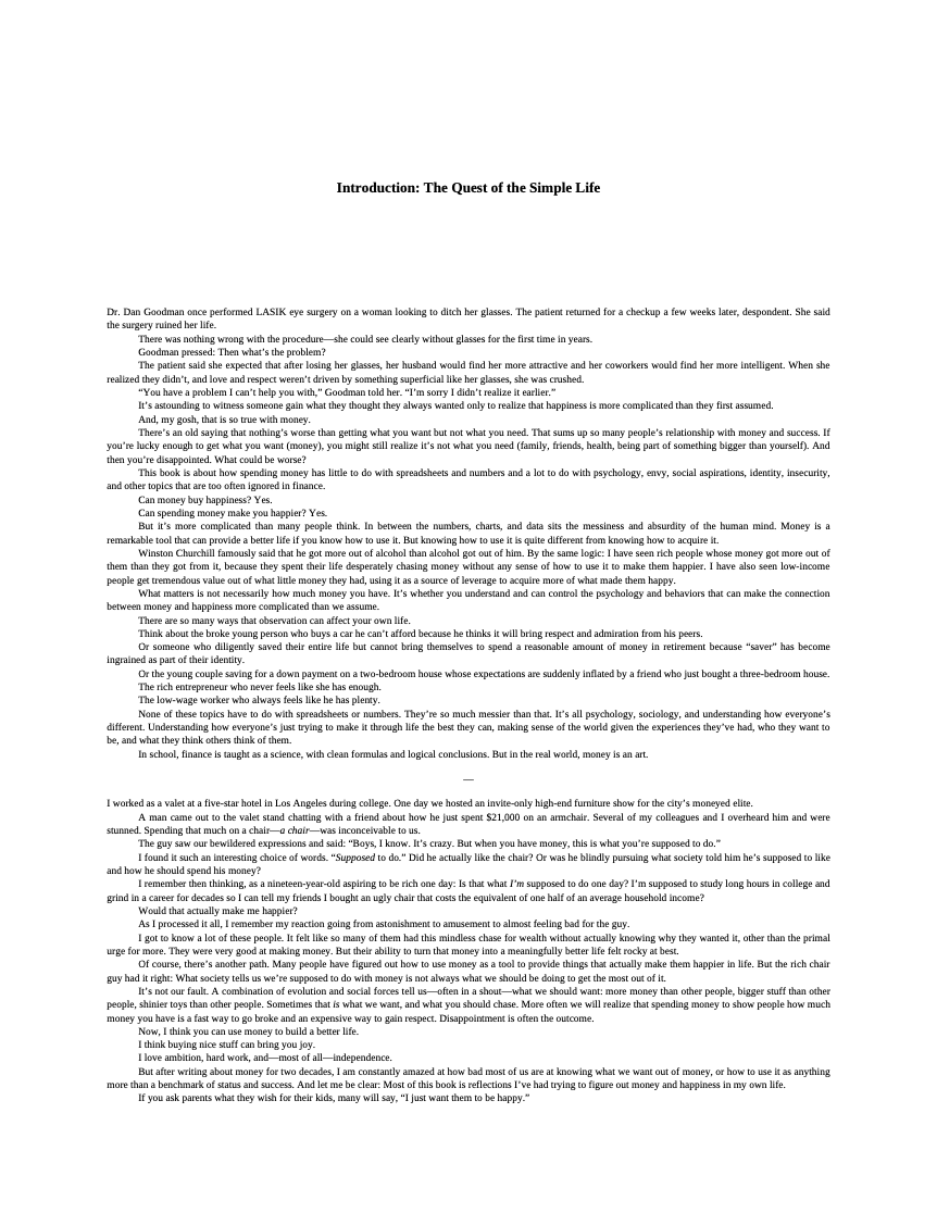 From the bestselling author of The Psychology of Money and Same as Ever , lessons on harnessing the power of money to live a happier life Most of us don’t know how to spend money. We chase things that impress others but leave us cold. Or we save endlessly, afraid to spend on what would actually make life better. We confuse admiration with envy, comfort with excess, and utility with status. The Art of Spending Money doesnt provide budgets, hacks, or one-size-fits-all solutions. It gives you understanding of how your relationship with money shapes your decisions—and how to reshape it so money works for you. Morgan Housel’s work has helped millions rethink how they earn, save, and invest. Now he turns his attention to the other side of the equation: how to spend. With insight and warmth, he shows why the most valuable return on investment is peace of mind, why expectations matter more than income, and why doing well with money has less to do with spreadsheets and more to do with self-awareness. This book isn’t about getting rich. It’s about getting the most out of what you already have—and learning to want what’s worth wanting.