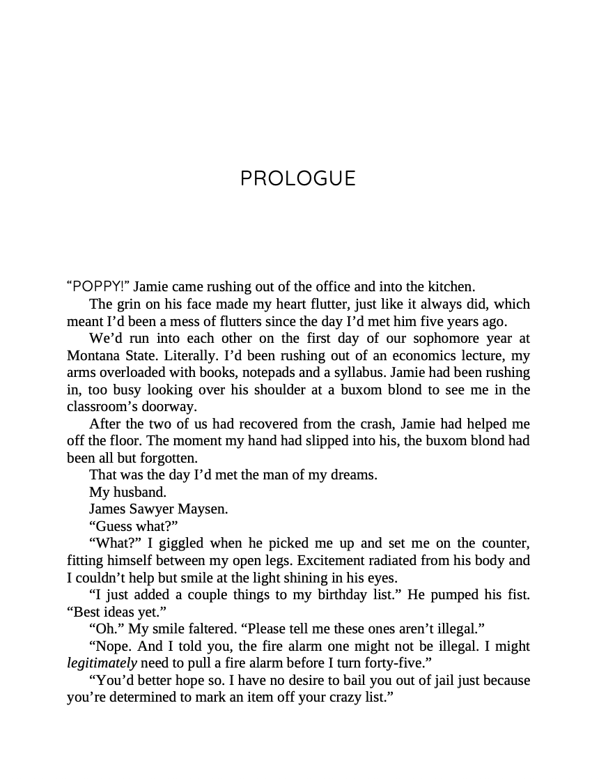 Years after her husband's tragic death, years of pain and sorrow and wishing for the life she'll never get back, Poppy decides to finish Jamie's birthday list. She'll do the things he wanted to most. Because maybe, just maybe, if she can complete his list, she can start to live again.