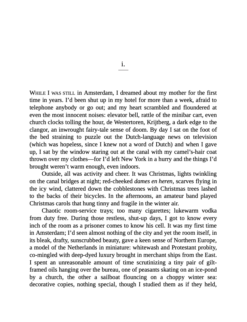 As an adult, Theo moves silkily between the drawing rooms of the rich and the dusty labyrinth of an antiques store where he works. He is alienated and in love -- and at the center of a narrowing, ever more dangerous circle.