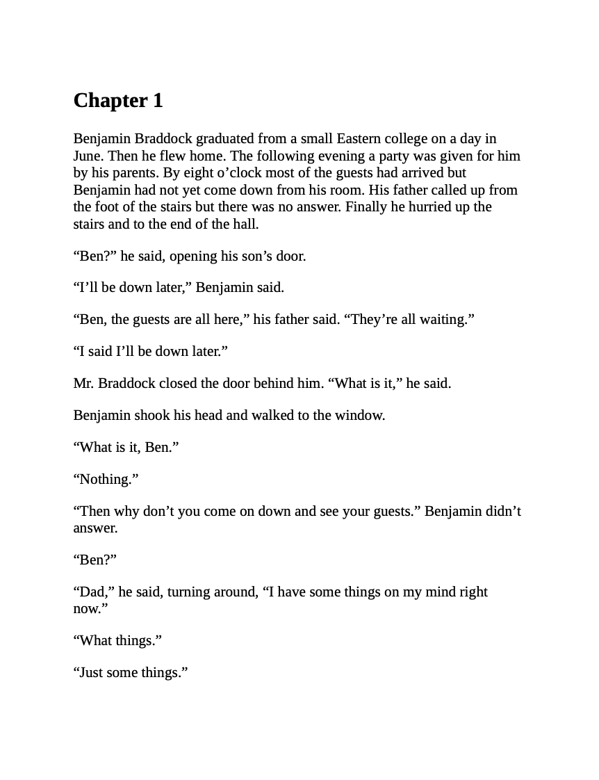The basis for Mike Nichols' acclaimed 1967 film starring Dustin Hoffman -- and for successful stage productions in London and on Broadway -- this classic novel about a naive college graduate adrift in the shifting social and sexual mores of the 1960s captures with hilarity and insight the alienation of youth and the disillusionment of an era.