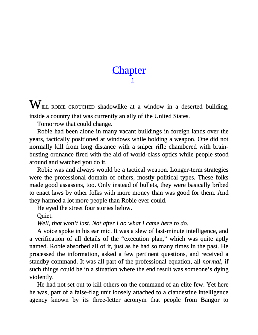 Will Robie is the government's most professional, disciplined, and lethal assassin. He infiltrates the most hostile countries in the world, defeats our enemies' advanced security measures, and eliminates threats before they ever reach our shores.