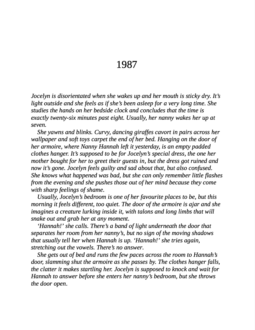 Then an unexpected visitor knocks on the door and Jo’s world is destroyed again. Desperate to piece together the gaping holes in her memory, Jo must uncover who her nanny really was, why she left, and if she can trust her own mother…