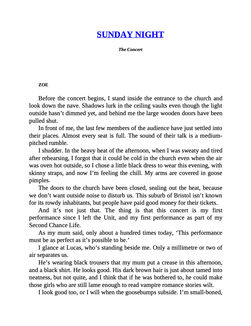Tonight Zoe is giving a recital that Maria has been planning for months. It needs to be the performance of her life. But instead, by the end of the evening, Maria is dead.