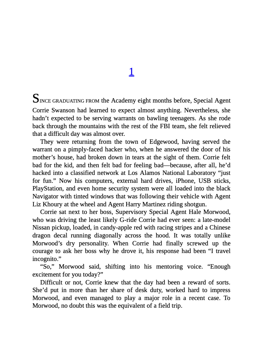 A mummified corpse, over half a century old, is found in the cellar of an abandoned building in a remote New Mexico ghost town. Corrie is assigned what seems to her a throwaway case: to ID the body and determine cause of death. She brings archaeologist Nora Kelly to excavate the body and lend her expertise to the investigation, and together they uncover something unexpected and shocking: the deceased apparently died in agony, in a fetal position, skin coming off in sheets, with a rictus of horror frozen on his face.