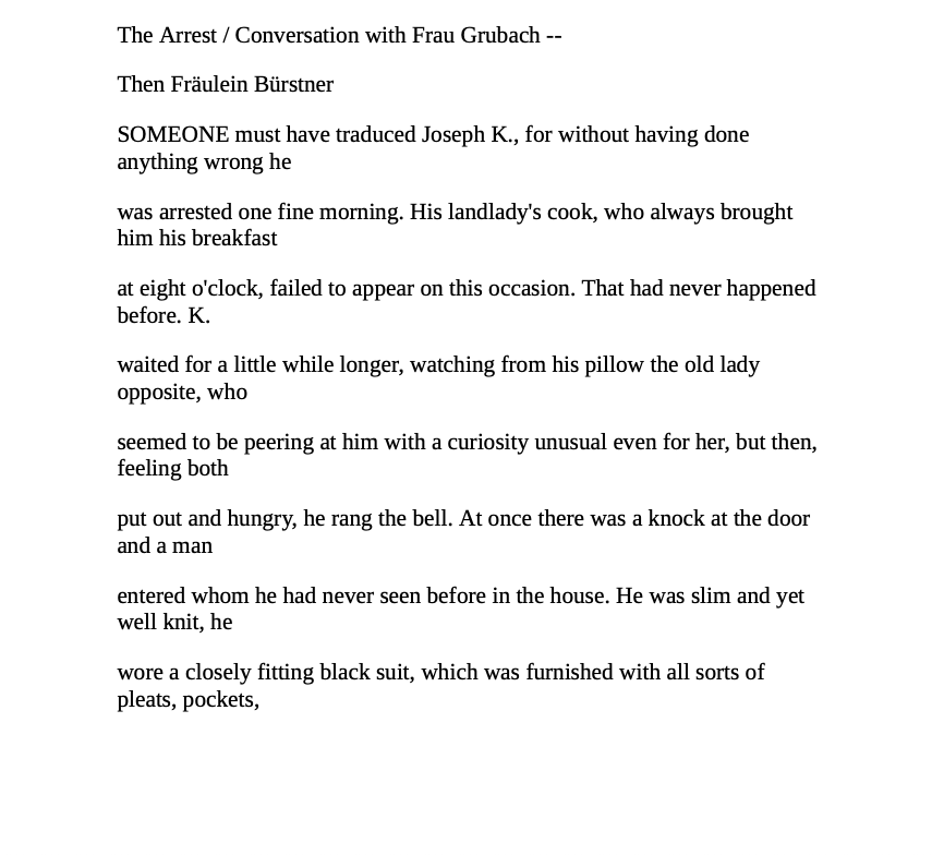 "Someone must have been telling lies about Josef K., he knew he had done nothing wrong but, one morning, he was arrested." From its gripping first sentence onward, this novel exemplifies the term ""Kafkaesque." Its darkly humorous narrative recounts a bank clerk's entrapment — based on an undisclosed charge — in a maze of nonsensical rules and bureaucratic roadblocks.