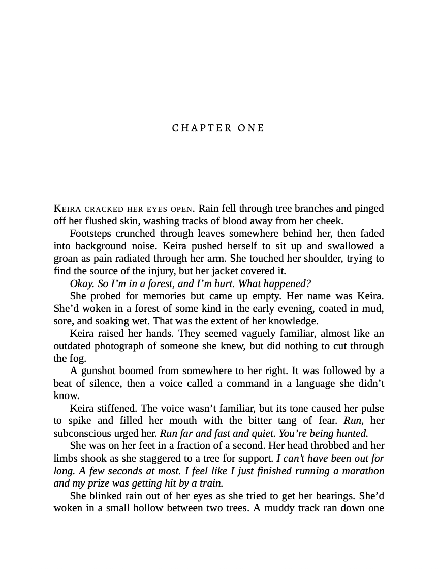Homeless, hunted, and desperate to escape a bitter storm, Keira takes refuge in an abandoned groundskeeper's cottage. Her new home is tucked away at the edge of a cemetery, surrounded on all sides by gravestones: some recent, some hundreds of years old, all suffering from neglect.