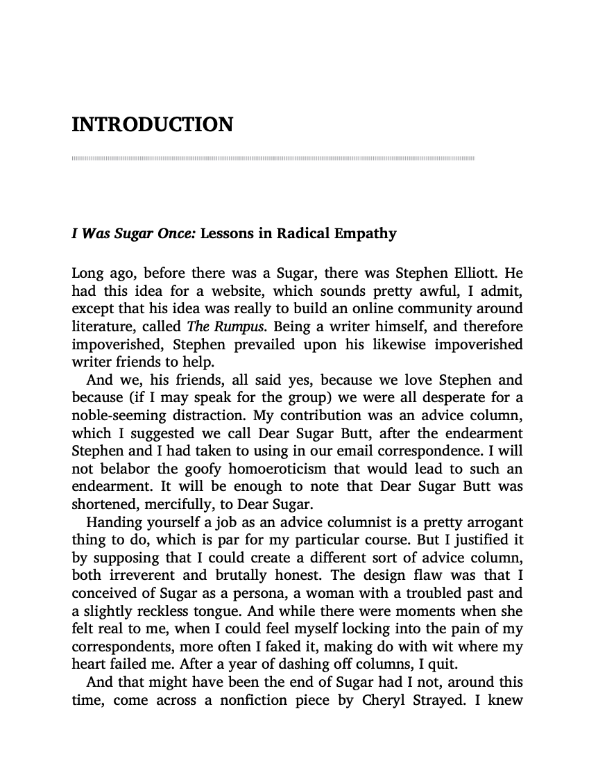 "Tiny Beautiful Things" brings the best of Cheryl Strayed's published and never-before-published online columns in one place and includes a new introduction by Steve Almond. Life can be hard, life can be great. For years, the anonymous author of Dear Sugar was the one to turn to for advice. Now, the best of Cheryl Strayed's online columns are collected in one place for you to enjoy-- and learn from.