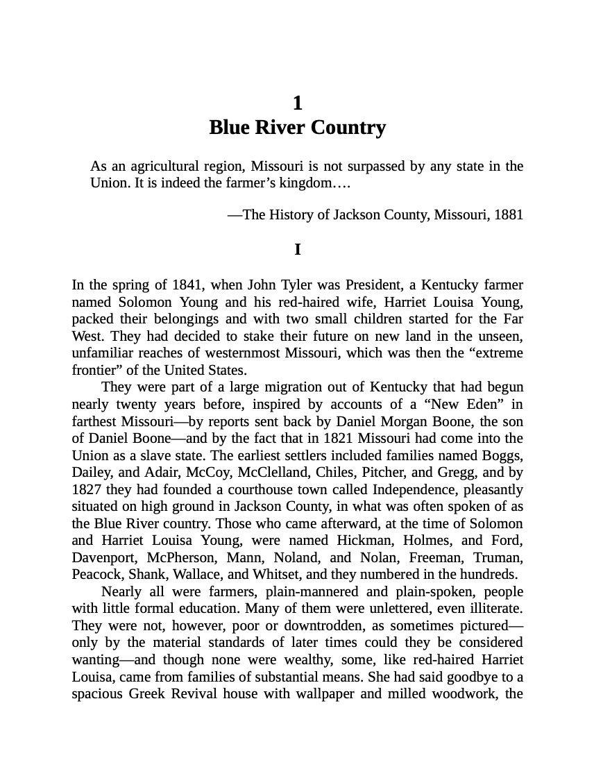 The story begins with Truman's origins in the raw, expansive world of the Missouri frontier. It chronicles a small-town, turn-of-the-century boyhood, family love, family tragedy, and young harry's years on the farm - years of relentless, often brutal work always cheerfully performed; of dogged learning, dogged courtship, optimism in the face of defeat, and courage in the face of war in 19418, the experience that changed everthing for Truman.