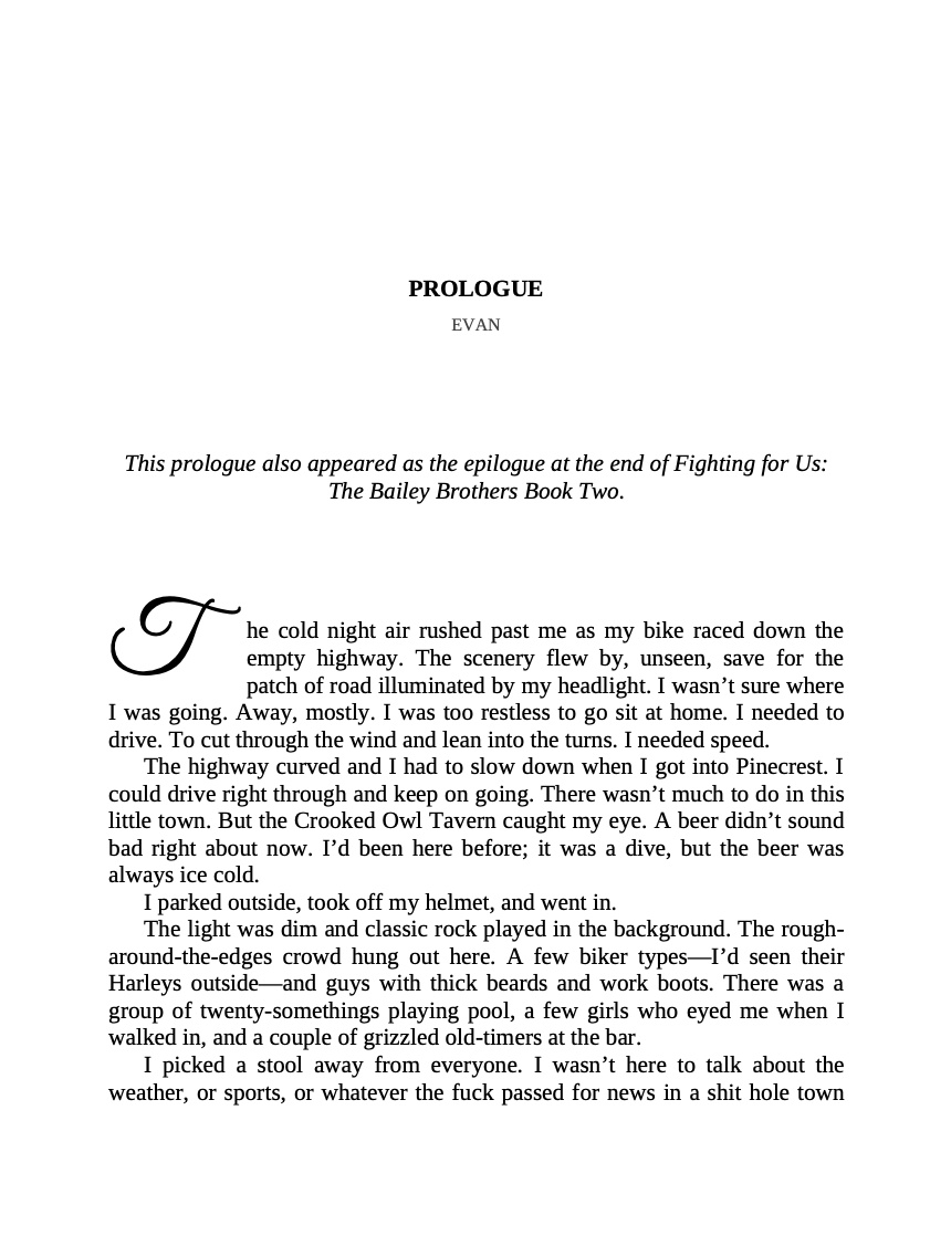 She's the sunshine to his storm cloud. Stoic, growly Evan Bailey has enough on his plate. A growing business, a pack of brothers who drive him crazy, a gossip-loving small town, and a rivalry that runs deeper than any family feud. Love? That's a hard pass. He already learned the hard way that he's better off alone. Fiona Gallagher has a problem. Or more like ten, but who's counting? The trouble with her car is just the cherry on top of the crap sundae, but she won't let that get her down. Besides, she has a plan. Evan Bailey--that brooding custom car builder who happens to hate her father--is going to help her. He just doesn't know it yet. The last thing Evan needs is the overly cheery Fiona crashing into his solitary life. But her offer is too compelling to ignore. Fiona isn't there to pick through the wreckage of Evan's heart. If he has one, he won't let her anywhere near it. But the tension between them is hot enough to combust. And when she starts to see the cracks in his stony façade, she realizes she's getting more than she bargained for--a lot more--in that big surly man.