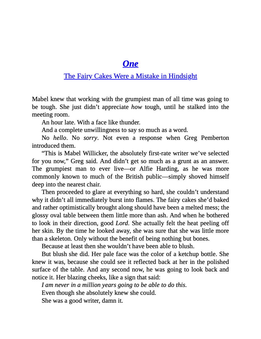 And so in walks curvy, cheery, cute as heck ghostwriter Mabel Willicker, who knows just how to sunshine and sass her way into getting every little detail out of Alfie. They banter and bicker their way to writing his life story, both of them sure they’ll never be anything other than at odds.