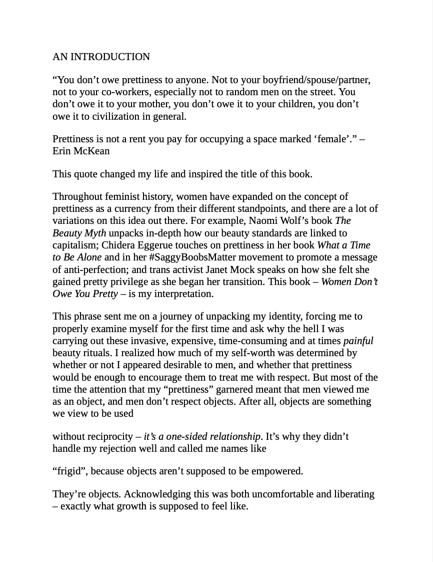 Women Don't Owe You Pretty is the ultimate book for anyone who wants to challenge the out-dated narratives supplied to us by the patriarchy.