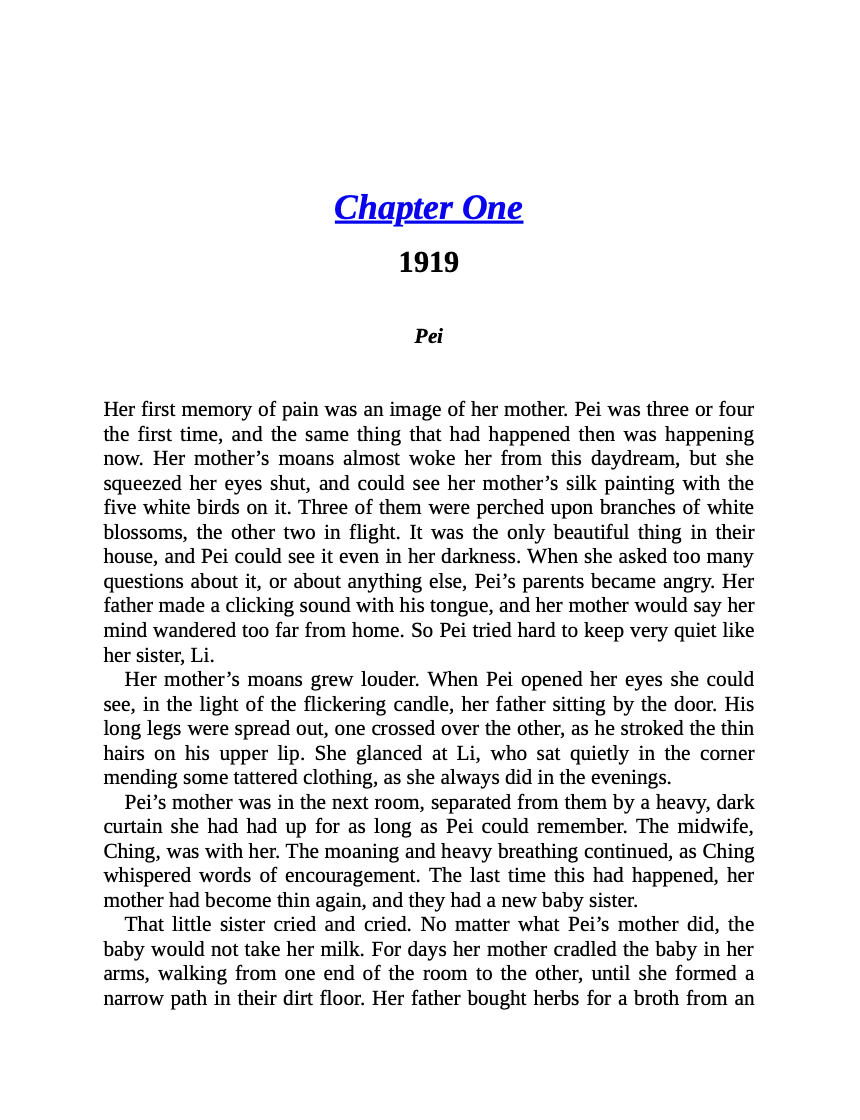 Leading the first strike the village has ever seen, the young women use the strength of their ambition, dreams, and friendship to achieve the freedom they could never have hoped for on their own. Tsukiyama's graceful prose weaves the details of "the silk work" and Chinese village life into a story of courage and strength.